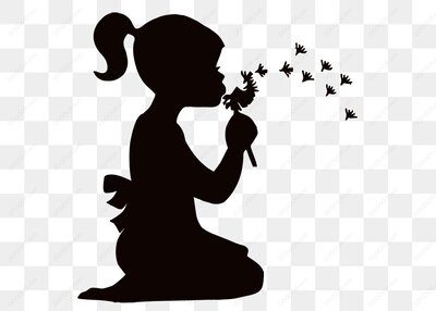女孩吹蒲公英剪影