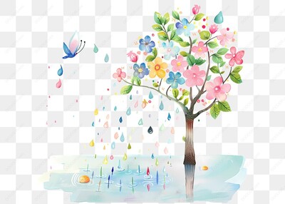 水墨风格飞舞花瓣飞翔喜鹊免抠PNG
