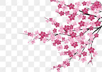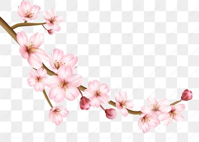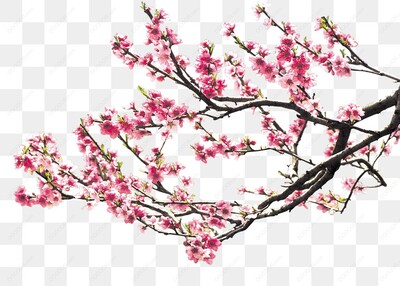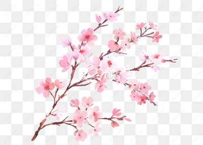 粉色樱花树枝植物花草元素-01
