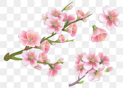 粉色樱花树枝植物花草元素-05