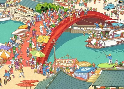 穿越到清明上河图(兔年版)卡通角色群像插画绘图设计[2P]
