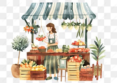 春季市场水果蔬菜售卖摊位免抠PNG-03