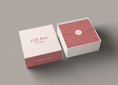 扣盖式奢华礼品包装盒样机PSD模板-01