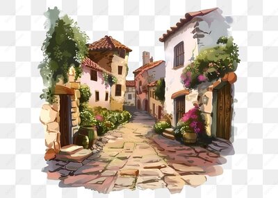 乡村小巷风景插画