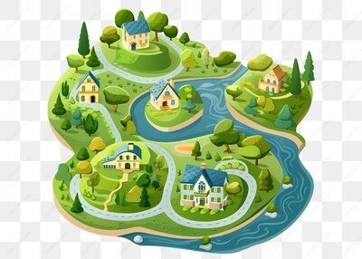 小岛上的房屋和道路