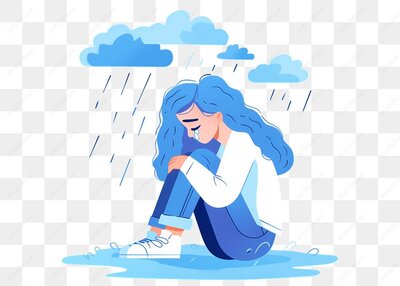 女孩坐在雨中哭泣