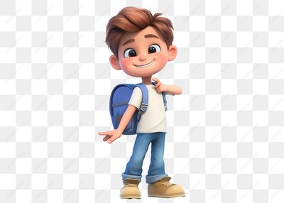 可爱男孩背包站立