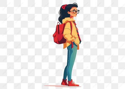 背包女孩站立侧影