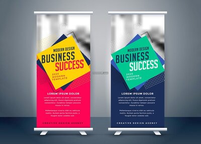 孟菲斯撞色商务展架矢量模板