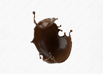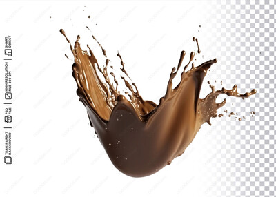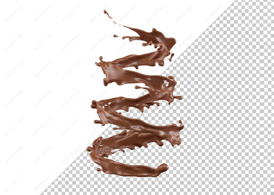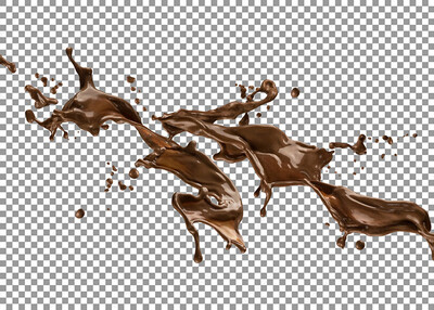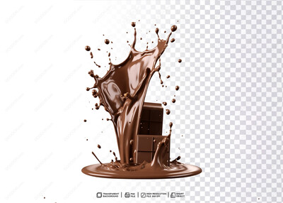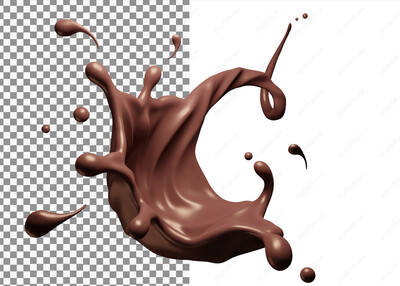 3D效果巧克力牛奶飞溅透明背景PSD素材-38