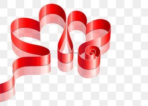 红粉色的彩带在桌面上编织成心形图案透明PNG素材
