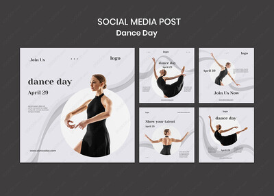 舞蹈日海报简雅飘带背景PSD模板素材-7