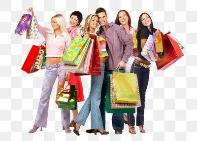 几名外国人聚在一起每个人提着购物袋表情高兴疯狂购物免抠PNG素材