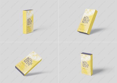 4视角浅黄色包装盒多视角展示样机模板PSD素材