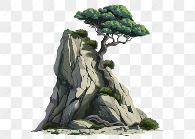 山间古树岩石风景插画
