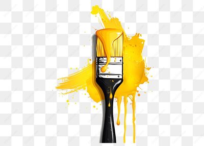 黄色颜料滴落的画笔特写展示