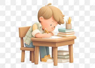 卡通男孩课堂上认真写字的温馨瞬间