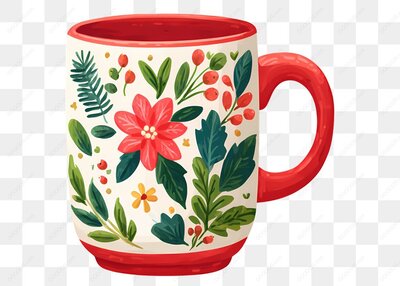 红色杯身花卉图案温馨日常咖啡杯