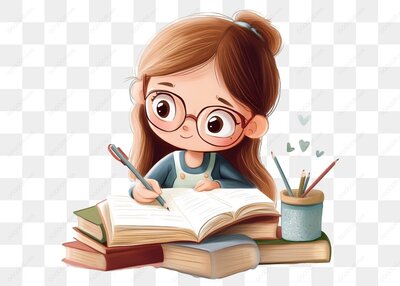 女孩专注书写书本旁绿植点缀温馨场景