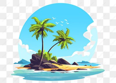 热带小岛椰树沙滩风景画