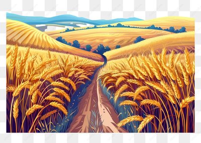 金黄麦田小径延伸至远方