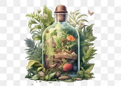 梦幻花园中的彩色玻璃瓶与蝴蝶精灵