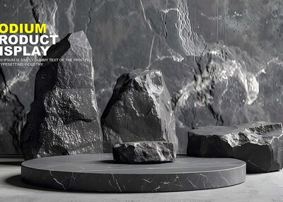 简约灰色背景自然光栅格板岩石底座PSD展示台模型