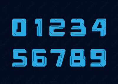 黑色背景蓝色黄色拼凑感数字矢量素材