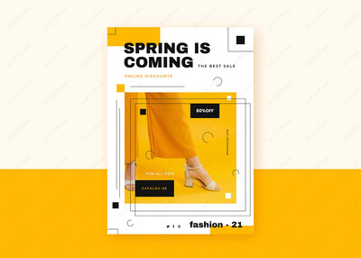 黄色背景促销海报矢量模板