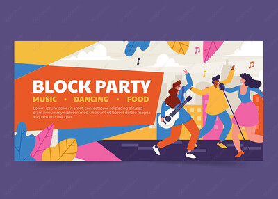 扁平漫画风派对传单矢量海报模板-04