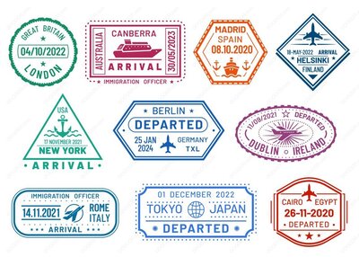 护照上的旅行印章合集矢量模板