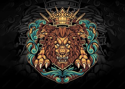 三头狮子与皇冠矢量LOGO素材